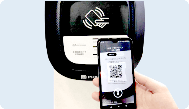 アプリからカメラを起動し、充電器本体に記載されている二次元コードを読み取ります。充電器番号が異なる場合、