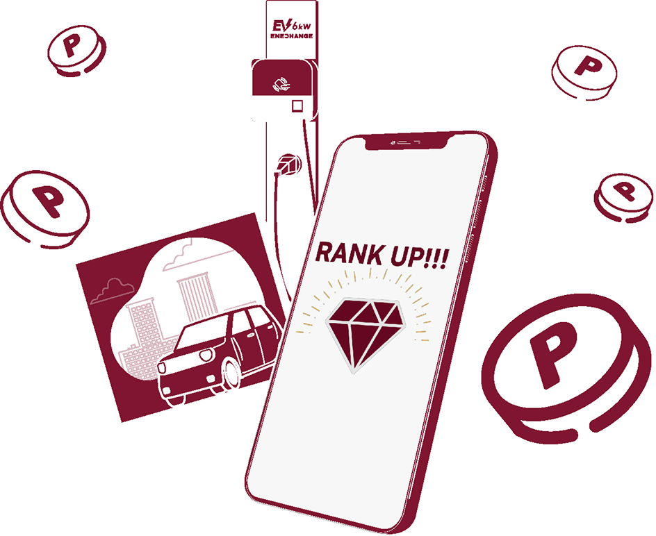 あなたのEVライフがもっと楽しく豊かになるプログラムです。EV充電エネチェンジアプリを利用して「充電」や「口コミ投稿」を行うことで専用ポイントがたまり、獲得したポイントに応じてランク(エントリー、ゴールド、プラチナ、ダイヤモンド)が上がっていきます。ランクアップすると、そのランクに応じた限定特典が付与されます。