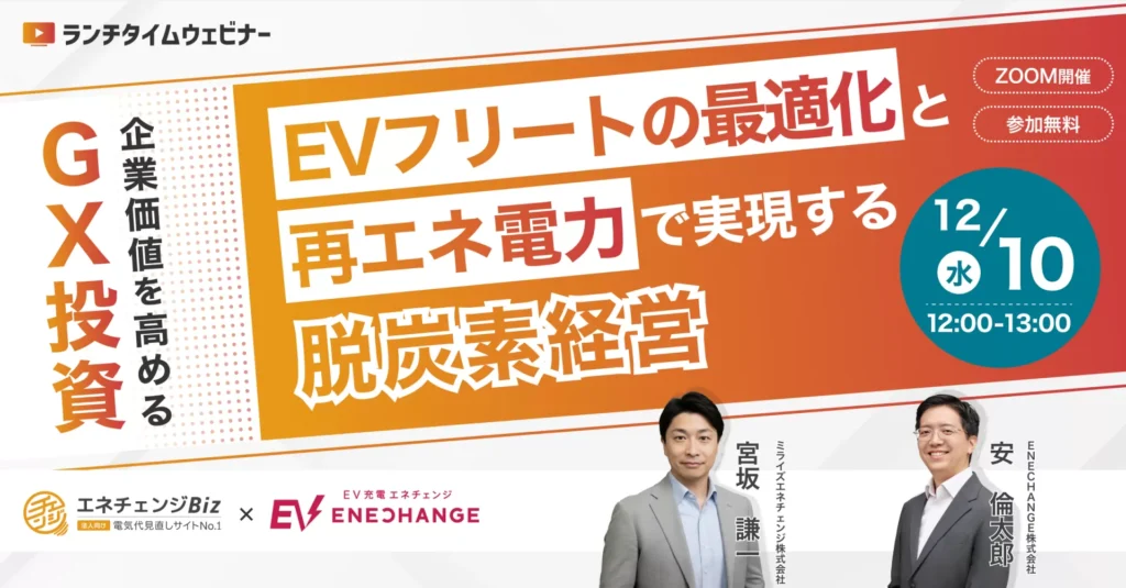 社用車のEV化と電力コスト削減を両立!企業価値を高めるGX投資と脱炭素経営【録画配信】